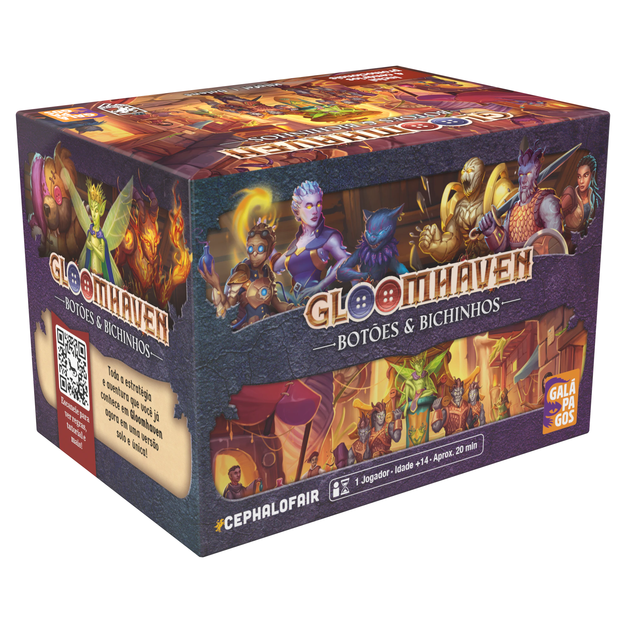 Gloomhaven: Botões & Bichinhos é um jogo solo com campanha original de Isaac Childres, que mantém a experiência de Gloomhaven em uma versão muito menor.